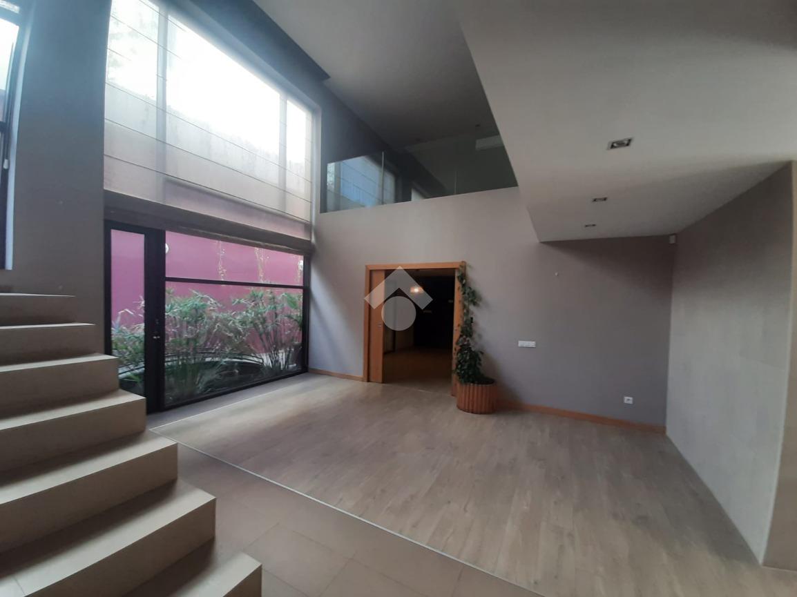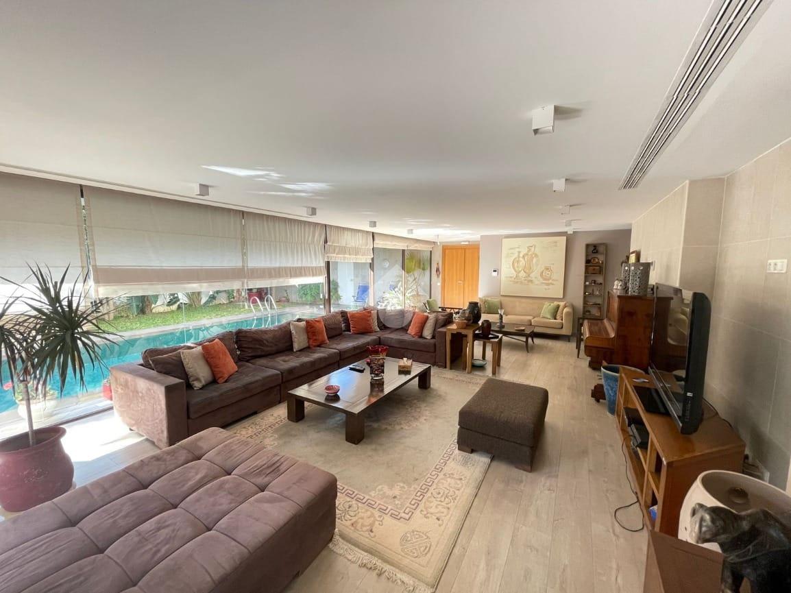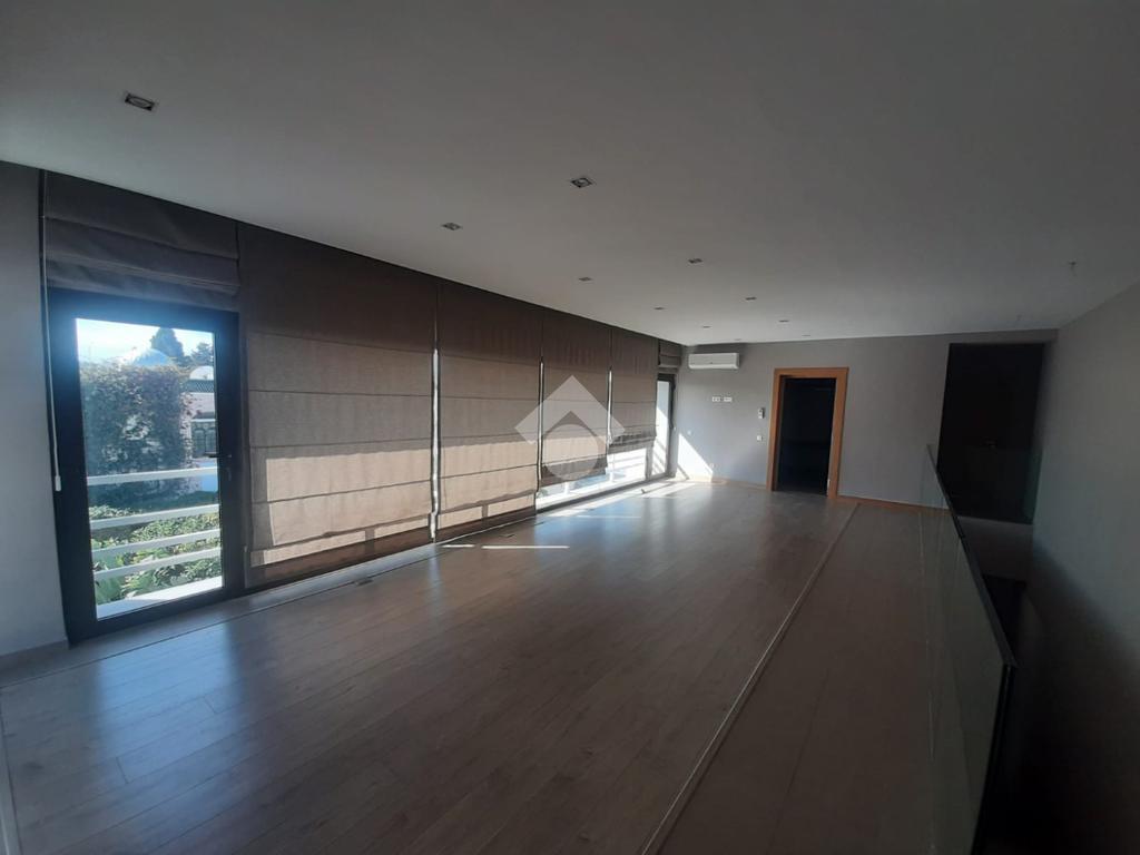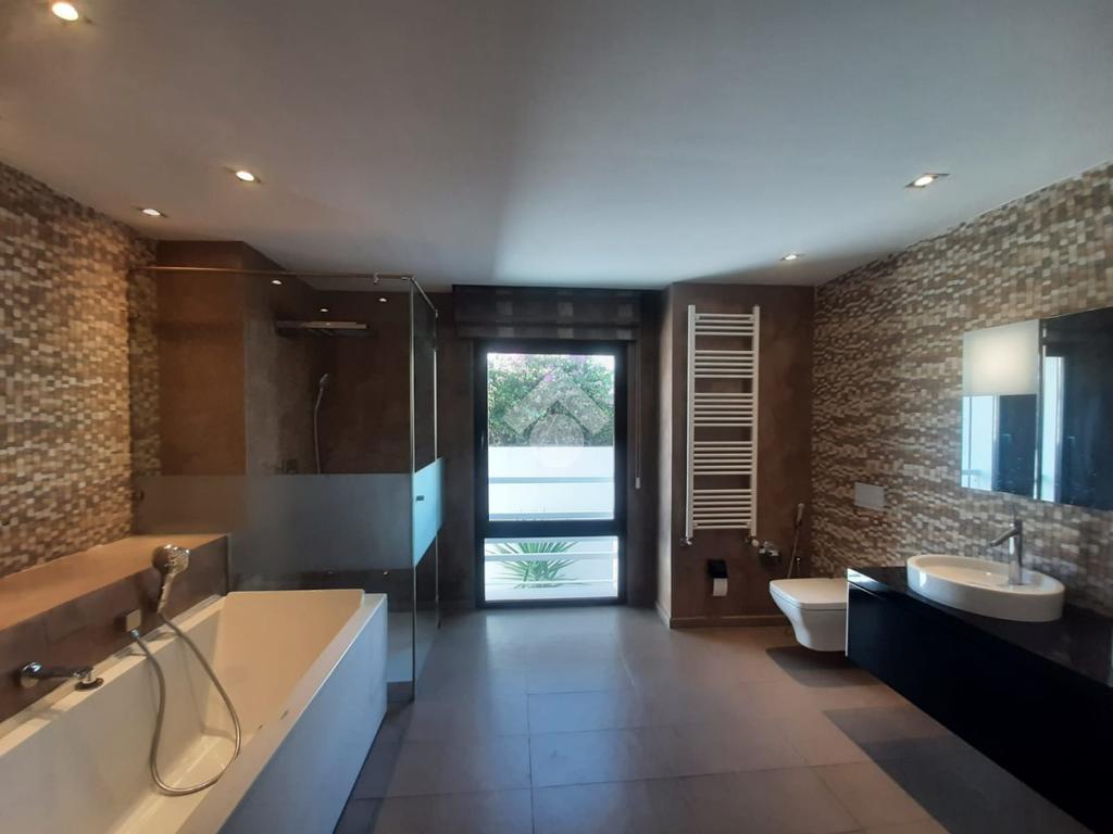 La villa se compose de trois niveaux. Au rez-de-chaussée, d’une superficie d’environ 209 m², vous trouverez un salon spacieux, une salle à manger ouvrant sur la piscine extérieure, une cuisine, une salle d’eau, des locaux techniques ainsi qu’un escalier intérieur menant aux étages supérieurs.