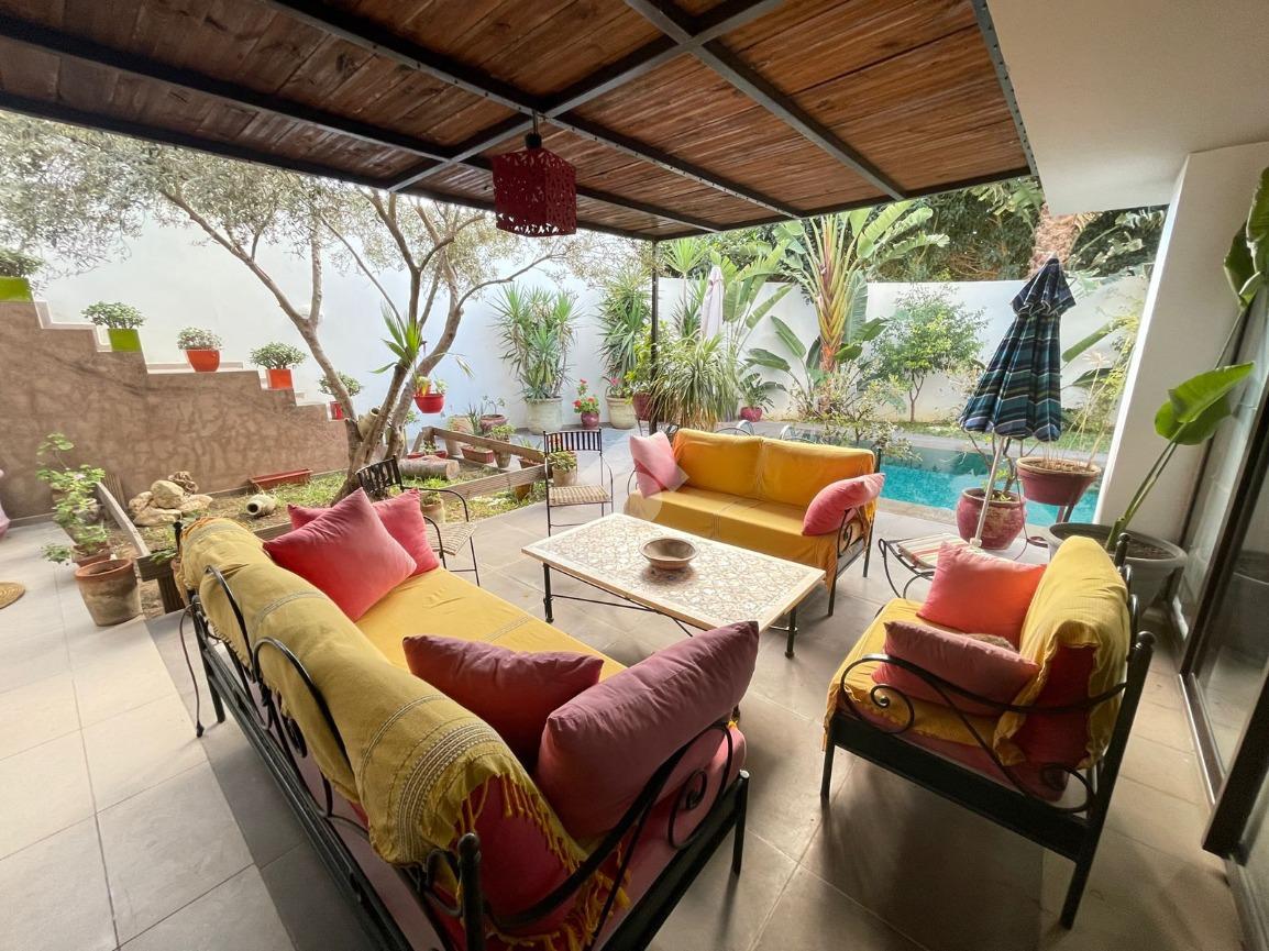 À l’extérieur, la villa dispose d’une piscine d’environ 36 m², d’un jardin bien entretenu et d’un garage pour deux voitures, offrant un cadre de vie agréable et paisible dans l’un des quartiers les plus recherchés de Tunis.