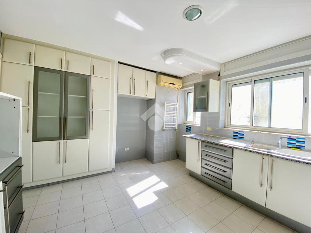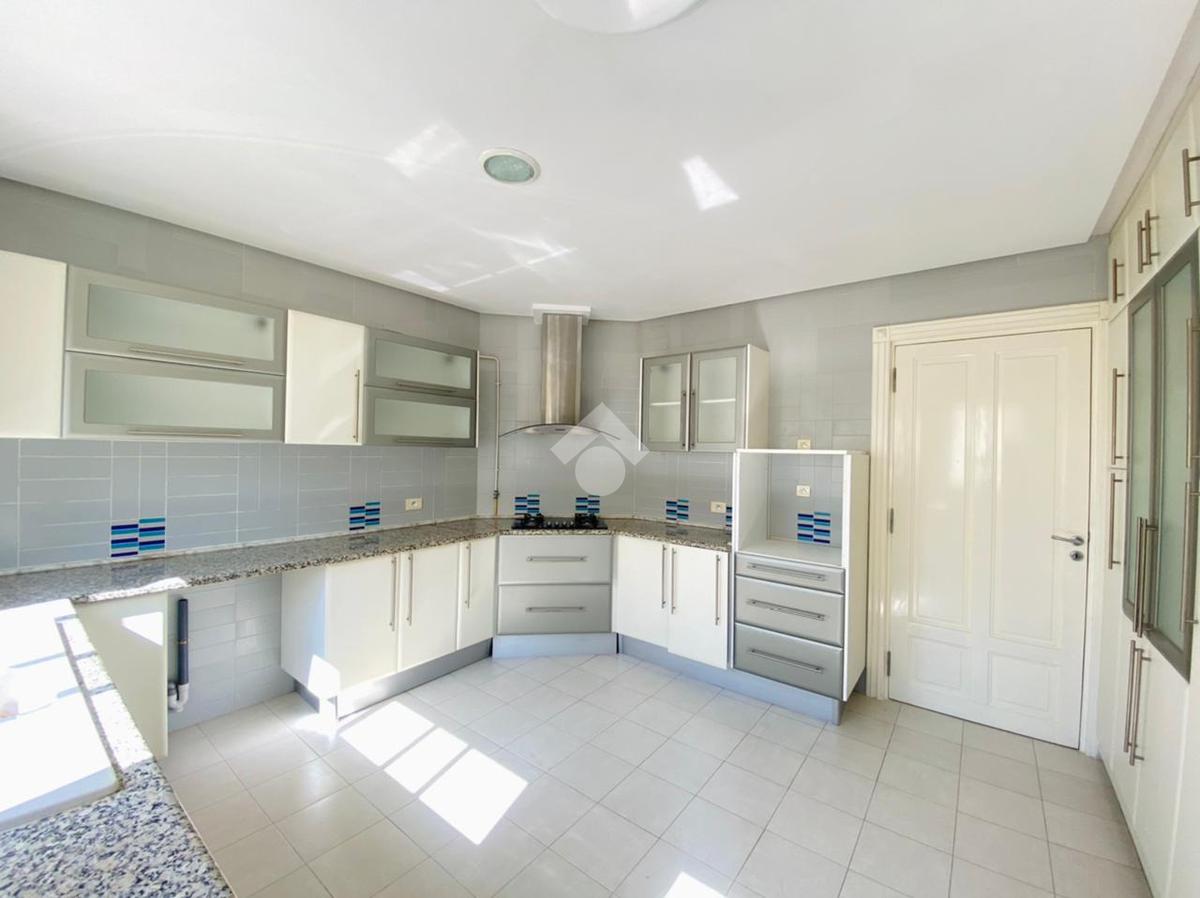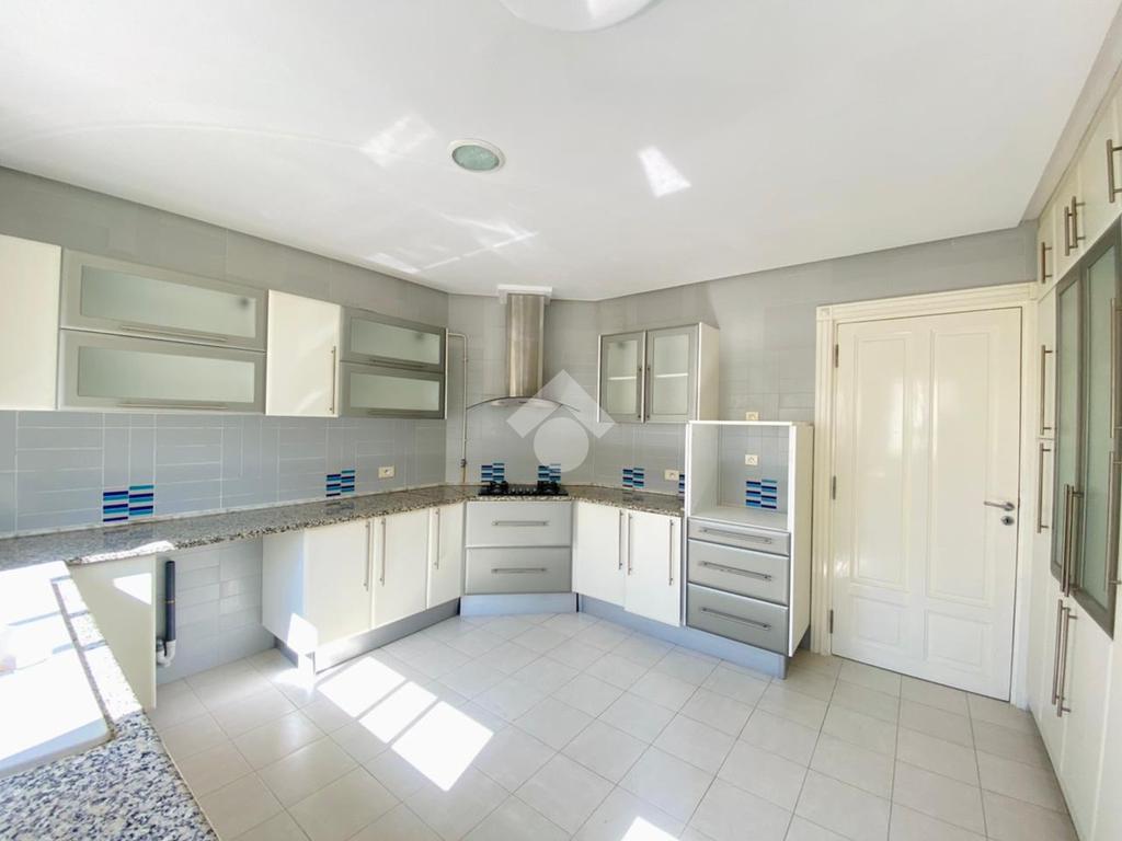 La cuisine indépendante, au design moderne, est entièrement équipée (plaque de cuisson, hotte, four) et dispose de nombreux rangements fonctionnels. Elle donne également accès à un espace annexe.